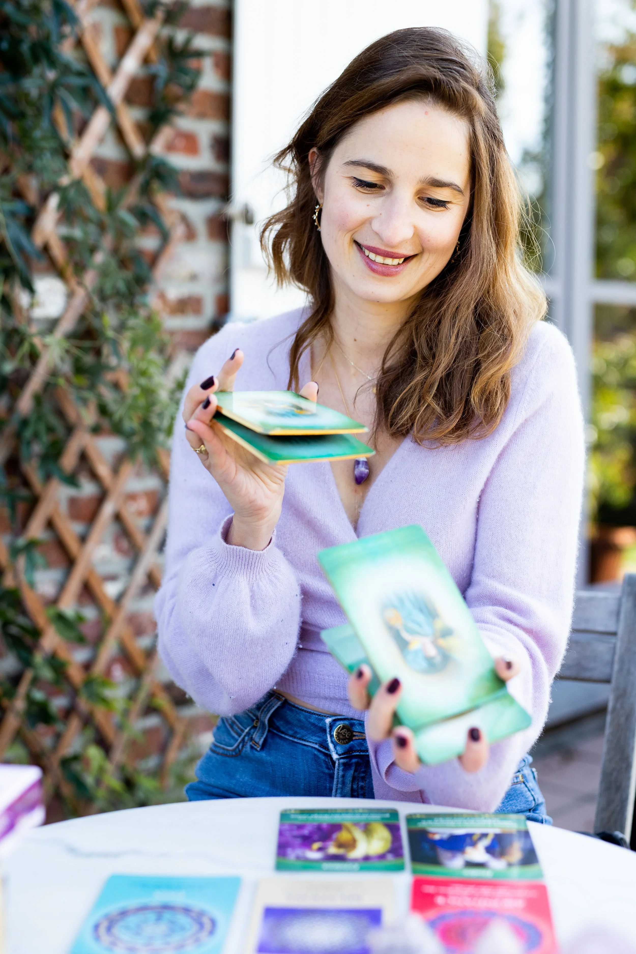 Je ne lis pas l'avenir (ça serait nous enlever notre pouvoir créateur), j’utilise les cartes comme conseillères (tarot et oracles).